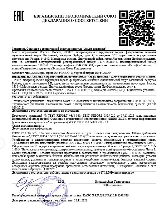 Сертификаты на продукцию производства ООО "Альфа-динамика"